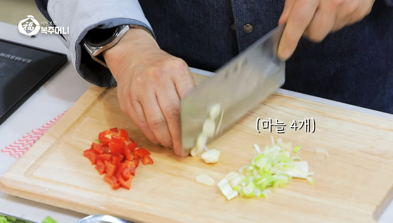 4. 파, 마늘을 넣습니다.