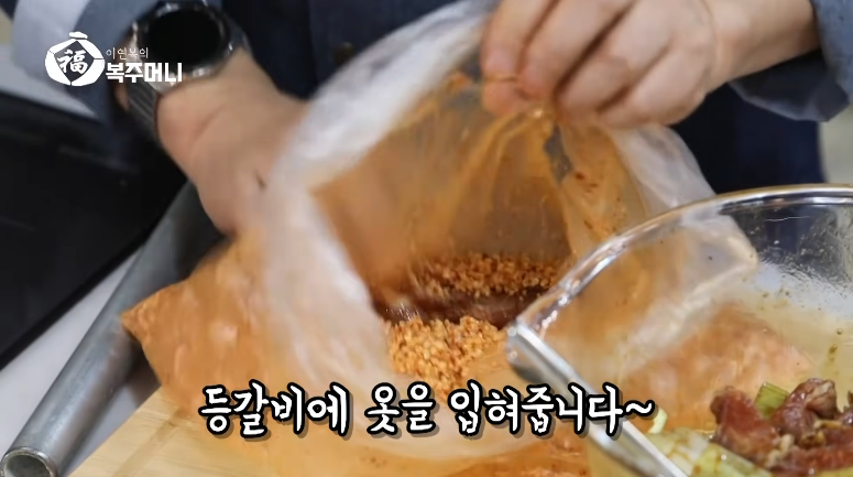 5. 갈비를 찹쌀봉지에 넣고 2시간 숙성시켜줍니다.