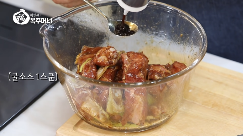 3. 맛술 3스푼, 간장 2스푼, 설탕 2스푼, 후추 조금, 굴소스 1스푼 또는 치킨스톡 1스푼