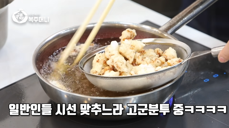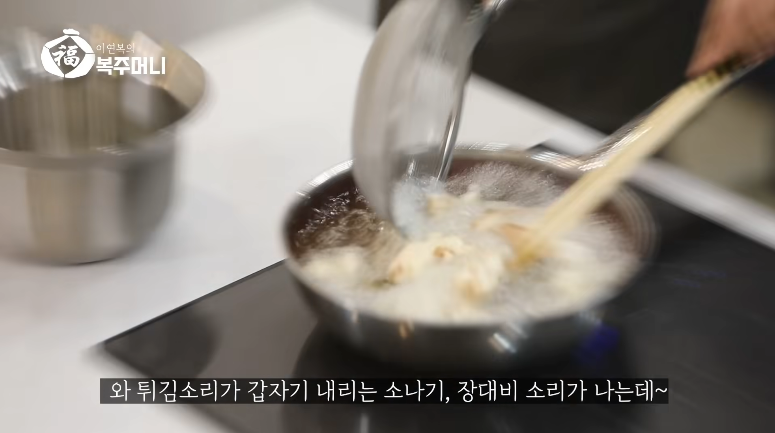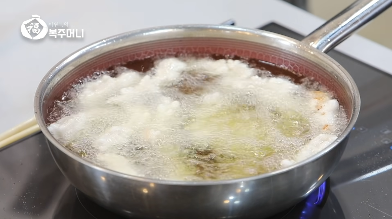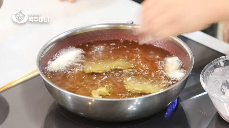 2. 초벌 후 기름의 기포가 줄어들면 재벌을 시작 합니다.