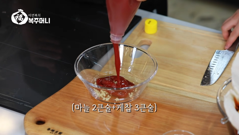 5. 볼에 마늘과 케첩을 넣어 주세요.
