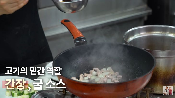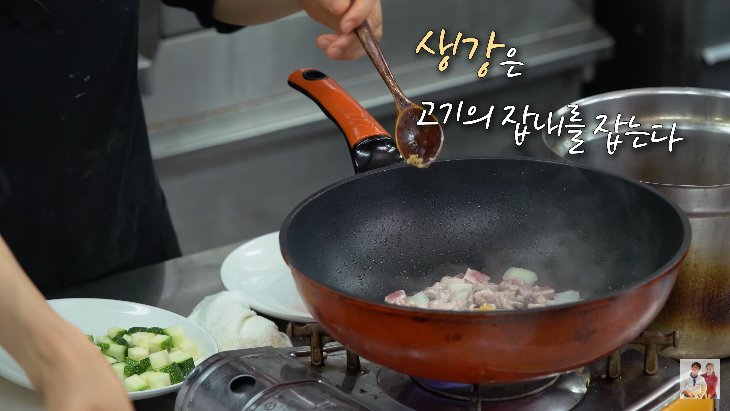 4. 고기에 생강, 간장을 조금 넣어 간이 베이도록 볶는다.