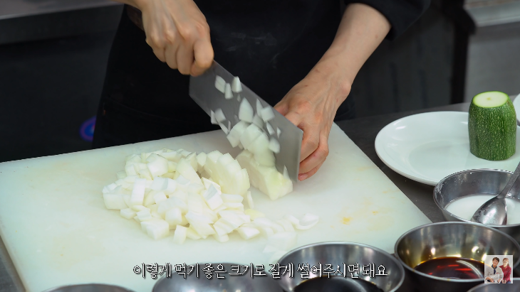 1. 고기를 비롯한 모든 재료는 다이스 네모꼴로 썬다.