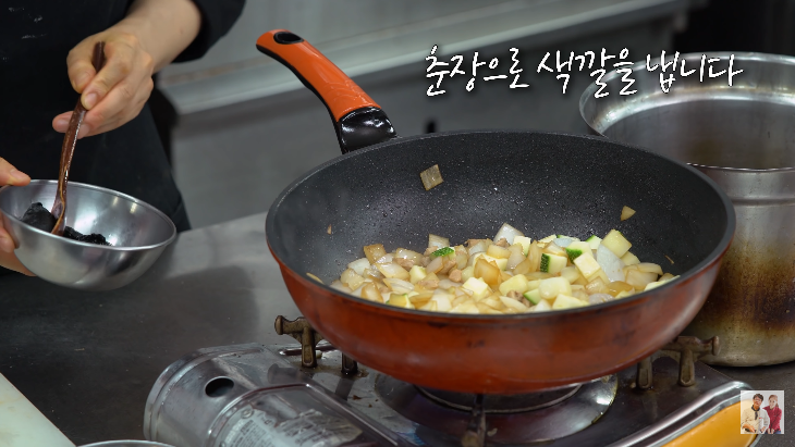 6. 볶음 춘장을 넣고 색을 맞춰 볶는다.