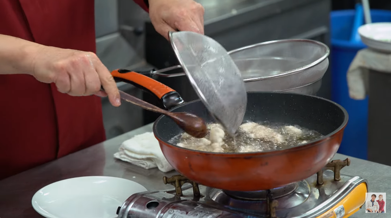 5. 기름에 다시 넣고 바삭하게 튀겨냅니다.