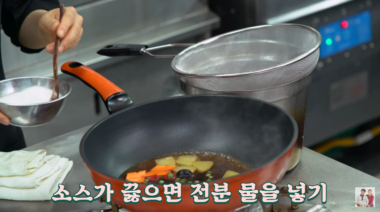 7. 우유처럼 만든 감자 물전분을 수차례 조금씩 넣고 꿀처럼 만듭니다.